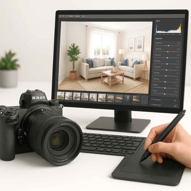 Von der Ausmessung über Lichtführung bis zur digitalen Rohbearbeitung: Wir arbeiten mit professionellem Equipment, klaren Arbeitsabläufen und einer Vorbereitung, die dem Objekt die nötige Ruhe und Ordnung gibt, um gut wirken zu können.